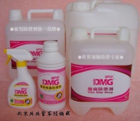产品原理: 防滑剂为水性液体,无毒无害(有国家 CMA 检测报告),具有超强的渗透力,能有效渗入地砖及石材毛细信道,通过与地面砖或地面石材的化学作用,使该信道增宽,遇水或油渍时与脚底接触能形成物理的吸盘作用,人行其上绝对安全!即使将来地表部分磨损,其内部已有的结合改变部分稳定且有一定深度,因而可保持长久( 3-5 年)防滑效果!